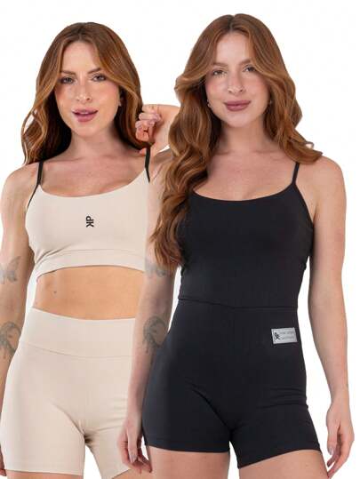 Backless Strappy Jumpsuit Kit + Fitness Set Strap Top Shorts Mid-Thigh Zero Transparency Gym