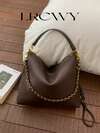 Dedoo 1pc FEISTURE Faux Suede Tote Bag (With Decorative Accessories), Large Capacity Solid Color Mature Elegant Ladies Handbag, Vintage Style Commuter Bag Suitable For Girls, Women, College Students, And Working Professionals