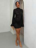 Svarta retro spetsnätstrumpor för kvinnor, sexiga ihåliga blommiga vävda tunn modell, Pure Desire strumpbyxor