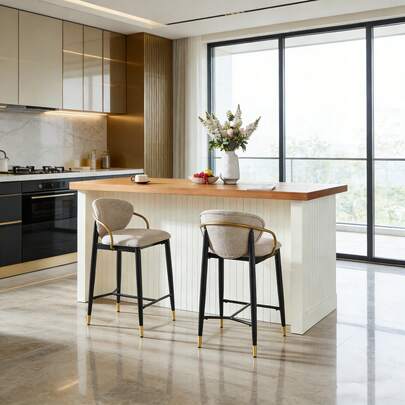 Barstools - Black + Gold + Light Brown + Fabric - View 2