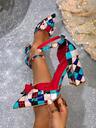 2025 Sommar Nya Prickiga Rosettknut Högklackade Skor, Damskor med Fyrkantig Tårem och Ihåliga Romanska Tjocka Klackar, Moderiktiga Klädskor