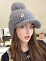 1st Kvinnor Utomhuscykling Varm Vinterstickad Päls Foder G Letter Vanlig färg Vindtät öronskyddshatt, Lämplig för snösporter och daglig användning
