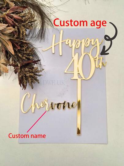 Anpassad tårtdekoration i akryl, personlig akryltårtdekoration, årsdagsdekoration, personlig tårtdekoration med åldersnummer och namn, akryltårtdekoration, födelsedag 1 16 18 21 30 40 50 60 70 80 90 100 - Ålderstårta-etiketter - Visa 3