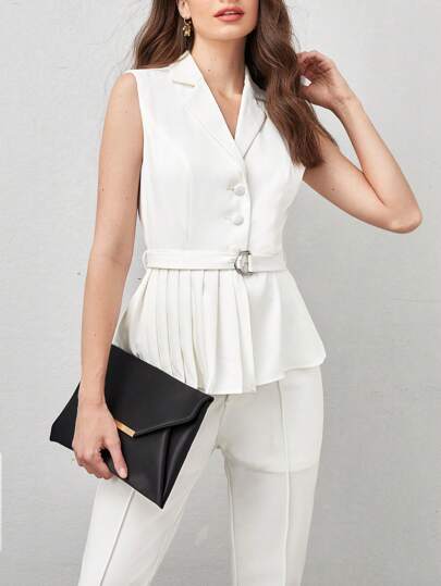 BizChic Lapel Krage Bälte Väst Kavaj Kontorsstil - Vitt - Visa 1