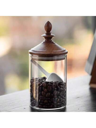 Förvaringsbehållare för kaffebönor med svart valnötslock, förvaringsburk i glas med trälock, lufttät, fukttät, förseglad förvaringsburk, burk i högborosilikatglas, förvaringsbehållare för kök, förvaringsburk för mat, lämplig för kaffebönor, jordnötter, sojabönor, mungbönor, brunt socker, förvaring - Multifärgad - Visa 1