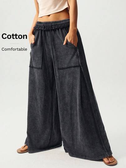 Bohemela Plus Size Casual Washed Vintage Wide-Leg Pants,Fall Clothes For Women - Dark Grey - View 1