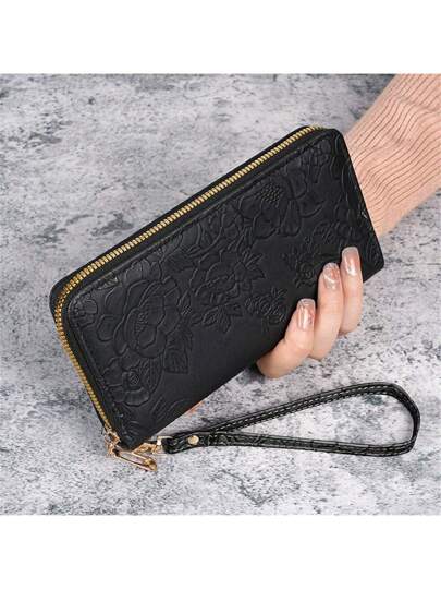 Boho Style Floral Print Ideal For Daily Use Wallet Purse Wallet Long Wallet Wallet Wristlet - Black - View 1