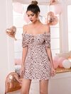Double Crazy Autumn Dress, Suitable For Wedding Guest, All Season Wear, Summer Music Festival Party Dress, Elegant Ditsy Floral Flare Sleeve Short Dress For Women, Summer