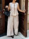 Dripcurv Women's Plus Size Blue And White Summer Tank Top And Trousers Two Pieces Set, Floral Tank Top, Floral Top, Vacation Casual Set, Spring Outfit, Holiday Outfit, Beach Dress, Country Style Outfit. Santorini Outfit For Women Resort Vacation Outfits Women Holiday Outfits For Women Resort Dresses For Women