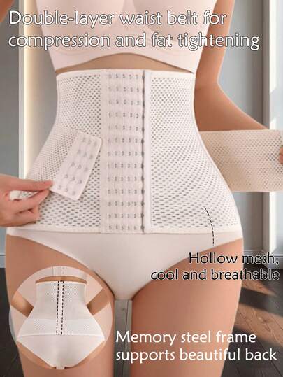 Andningsbar midjetränare, Shapewear midjebandage för kurvformning - Aprikos - Visa 6