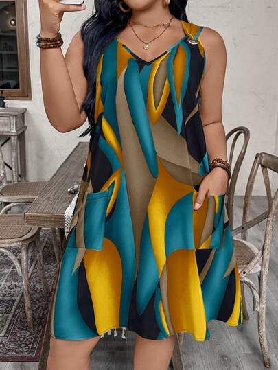Breezaya Plus Size Summer Casual Allover Print Sleeveless Dress