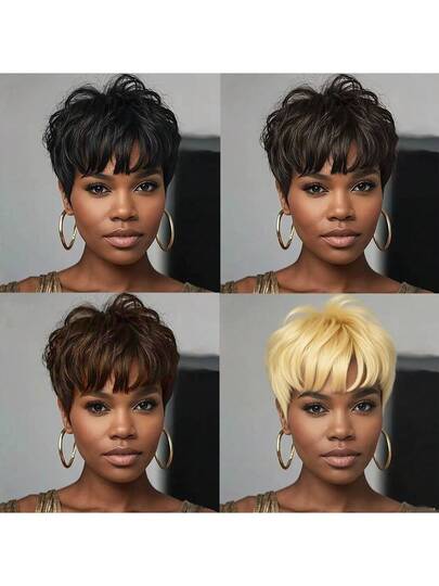 Brown(4#) Pixie Cut Human Hair Wigs For Women 1B Color 613 Blonde Dark Brown(2#) Layered Straight Hairstyle With Bangs Brazilian Remy Hair Rose Cap Net Glueless Bob Wigs For Daily Wear & Music Festival & Halloween & Christmas & New Year - Multicolor - View 1