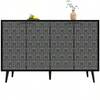 Dining Room Cabinet (120 * 35 * 78 Cm), Storage Unit For Dining Room And Living Room, Unique Door Design, Freestanding, Anti-Tip, Herringbone Pattern, Carved Door, Black