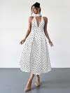Selianne Women's Ditsy Floral V-Neck Sleeveless Waisted Maxi Dress