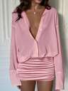 Cévolie Damklänning med rund hals och lång ärm, plisserad elegant sammet, enfärgad