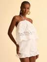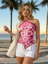 CAJUNI Damblus med rund hals, ärmlös, kort knytning i sidan, urholkning, sommarsemester, strandfest, tryckt