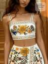 CAJUNI Sexig, randig topp med geometriskt tryck och urringning för kvinnor, elegant och elegant