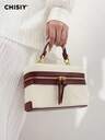 CHISIY 1 st moderiktig brun & vit lapptäcksväska i minimalistiskt material, lämplig för affärer, vardagsliv, shopping, skola, med dragkedja, axelrem, axelrem, mångsidig vintage-charm, elegant & unik stil för kvinnor, lämplig för alla tillfällen