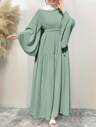 Damklänning med rund hals och lanternärm, enfärgad och elegant arabisk stil, enfärgad