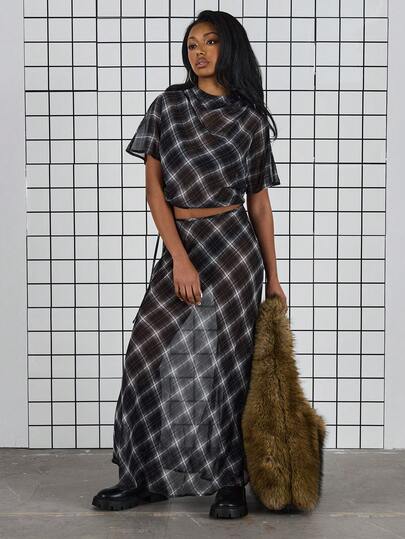 COUREZ Drapped Woven Check Top /Y2K Spring Clothes For Women - Multicolor - View 1
