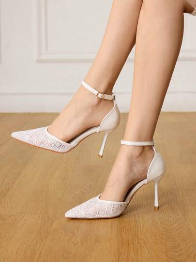 CUCCOO HITCHD Pointed Breathable Mesh Hollowed Out Fashion Temperament Versatile Sexy Fairy Wedding Banquet White High Heels