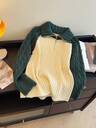 Plusstorlek Dam Höst/Vinter Ny Fyrkantig Dragkedja Randig Stickad Tröja, Mode Avancerad Minimalistisk Söt Elegant Tröja, Mångsidig