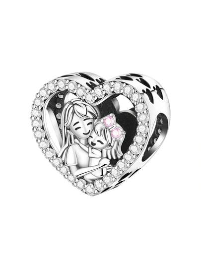 CYCUFF 1 st Silverpläterad berlock mor och dotter omfamna hjärtpärlor hänge för original armband halsband DIY smycken gör passform Födelsedagspresenter kvinnor present mors dag present - Silver - Visa 5