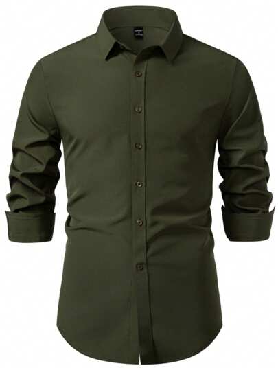 Calvornis Herrskjorta i enkel, enkelknäppt, långärmad, höst - Armé Grön - Visa 2