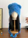 1 st stjärnig fuzzy kaninöron plyschmössa, kvinnor höst/vinter varm virkad liten ansiktsskyddande söt kaninöron stickad mössa, varm öronskyddande mössa, söt valpstickad mössa för kvinnor höst/vinter varm öronskydd stickad mössa med knyt, söt köldtålig mössa