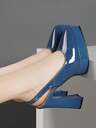 Högklackade skor för kvinnor, nya röda och blå strass-mode med spetsiga tå Chunky Heel Pumps