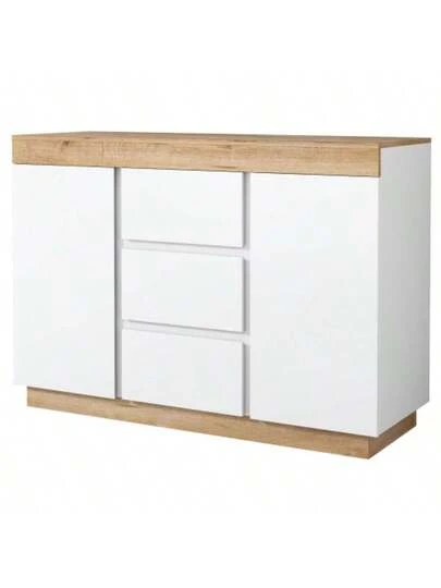 Chest Of Drawers With 3 Drawers And 2 Doors, Locker, Storage Function, For Bedroom And Living Room, E1 Chipboard, White+Oak - White - View 1