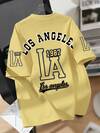 Teenage Boys' Retro LA Academy Design Short Sleeve Loose Comfortable Breathable T-Shirt, Casual Campus Summer Wear, Boys Tops