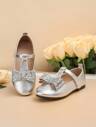 Flickor Bow Decor Glitter Ankel Strap Flats för utomhusbruk