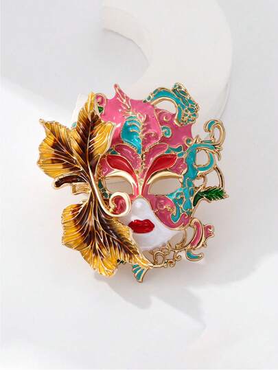 Chinese Style 3D Embossed Mask Brooch, Vintage Chic Lapel Pin, Luxury Niche Clothing Accessory