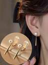 1 par moderiktiga örhängen med långa tofsar och fuskpärlor, eleganta personliga myggspiralörhängen utan piercing, lämpliga för kvinnor, vardagskläder och högtidsgåvor