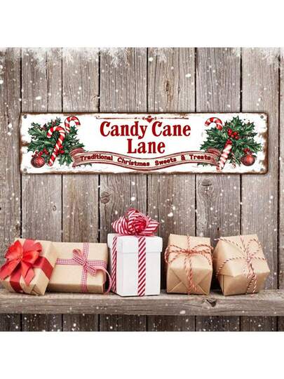 Christmas Candy Cane Lane Metal Sign, Traditional Candy And Dessert Wall Decor, Pre-Drilled Holes, Waterproof, Suitable For Indoor And Outdoor Display, 10.16x40.64 Cm (Random Hole Pattern Sent) - Multicolor - View 1