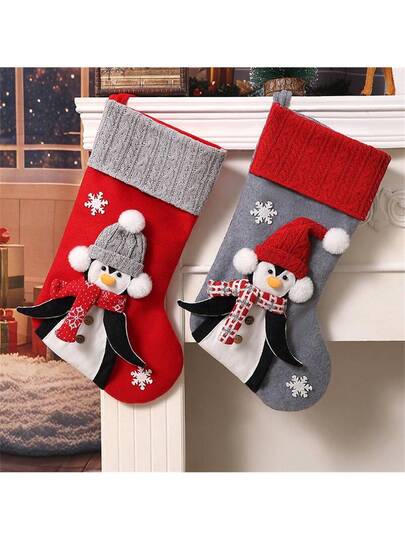 Christmas Stockings Gray 3D Christmas Penguin Stockings Decoration Christmas Decorative Stockings Gift Bag, 2 Pcs