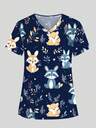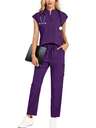 Dam Kortärmad Nedfällbar Krage Kontrastfärgad Midja Justerbar Bantningsficka Scrubs Sjuksköterskeuniform Set, Arbetskläder För Tandläkarhälsovård, Djursjukhus, Laboratorium