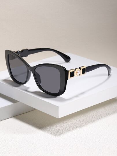 1 Pair Fashion Acrylic Cat-Eye Glasses With Faux Pearl Embellishments Beach Accessories For Women Glasses Shades Basics Fall Winter Women Outfits Clothes Business Casual Gifts For Summer Beach Vacation,Outdoor,Travel - Black - View 1