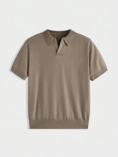 SHEIN X ELOISA & ORSON AKNOTIC Business Casual Herr enfärgad polotröja med kort ärm, stickad, skoltopp - Brun - Visa 1