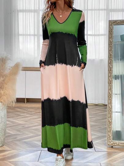 SHEIN LUNE Färgblock Gömd Ficka Klänningar - Svart - Visa 1