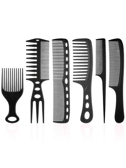 Combs For Hair Stylist, 6 Pcs Styling Comb Set Wide Fine Tooth Rat Tail Comb Hair Picks Texture Combs With Double Side Tail Hair - Black - View 1