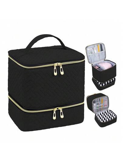 Corduroy Nail Polish Organizer And Nail Lamp Case, Nail Kit Organizer Holds 30 Bottles (15ml - 0.5 Fl.Oz), Nail Polish Carrying Case With Manicure Tools Storage Sections - Multicolor - View 1