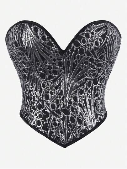 Corset Top Strapless Women Shapewear Bustier Punk Style Embroidery Bodysuit Slim Tight Boned Bodice - Silver - View 1