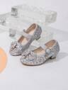 1 par söta 2025 nya barnskor med hög klack, rosett och prinsessskor, lämpliga för dansuppträdanden