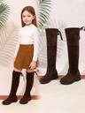 De snygga mellanhöga överknästövlarna är designade för tonårsflickor med resår och dekorativa snörningsdetaljer, allt-i-ett-stövlar