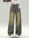 Tonårsflicka Vintage amerikansk stil, slitna, tvättade, lös passform, raka jeans, avslappnade byxor, smala, smickrande, mångsidiga för vår och höst