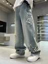 Tonårspojke raka ben Distressed jeans jeans, fashionabla Pentagram utsvängda byxor