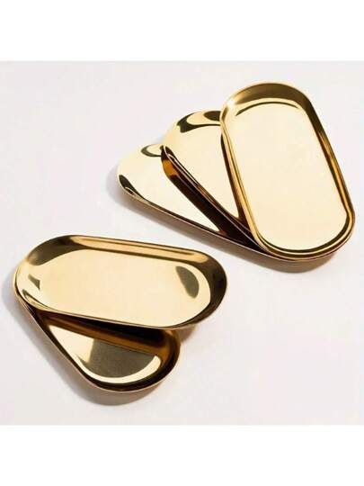 Creative Oval Shaped Metal Tray (Gold Color), Christmas Golden Platter, Fruit Plate, Dessert Plate, Snack Plate, Salad Plate, Cake Plate, Suitable For Restaurant, Kitchen, Dining Table, Christmas Back To School - Gold - View 1