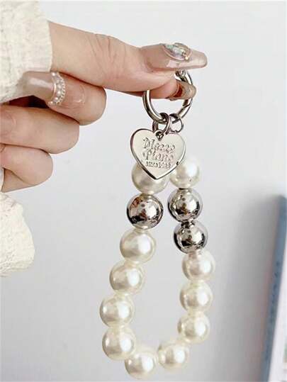 Creative Pearl Chain Heart Shaped Pendant For Phone, Bag, Earphone, Universal Accessory - Beige - View 1